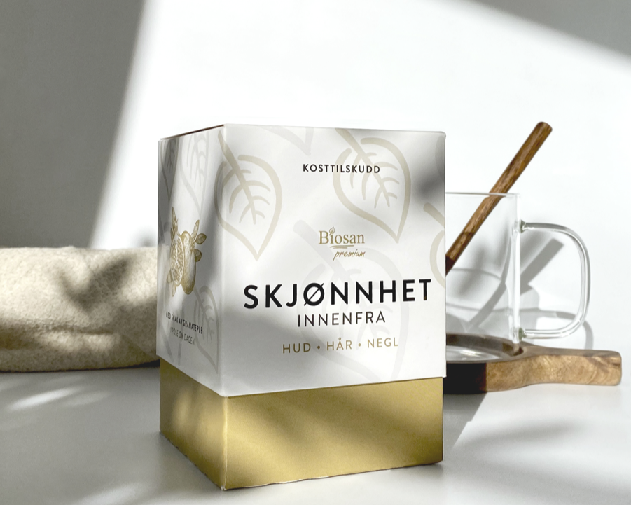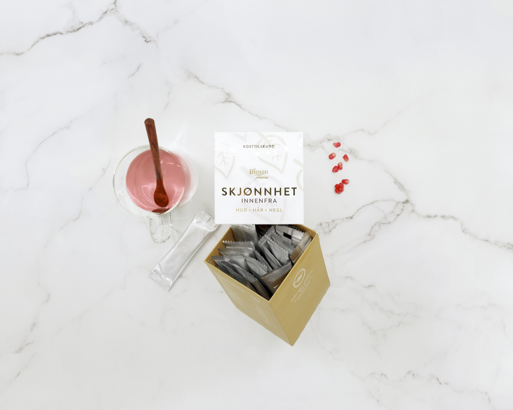 Jūrinis kolagenas „Biosan Skjønnhet“ - grožio gėrimas, kuris yra daug daugiau nei tik kolagenas. Sudėtyje yra 5000 mg aukščiausios kokybės jūrinių kolageno peptidų ir galingas sveiką odą palaikančių ingredientų mišinys, įskaitant vitaminą C ir hialurono rūgštį.
